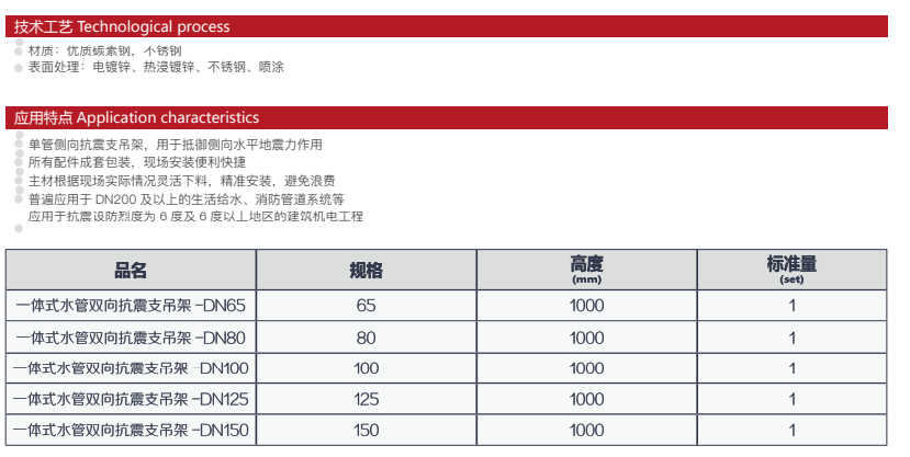 1.一體式水管側(cè)向抗震支吊架2、一體式水管雙向抗震支吊架